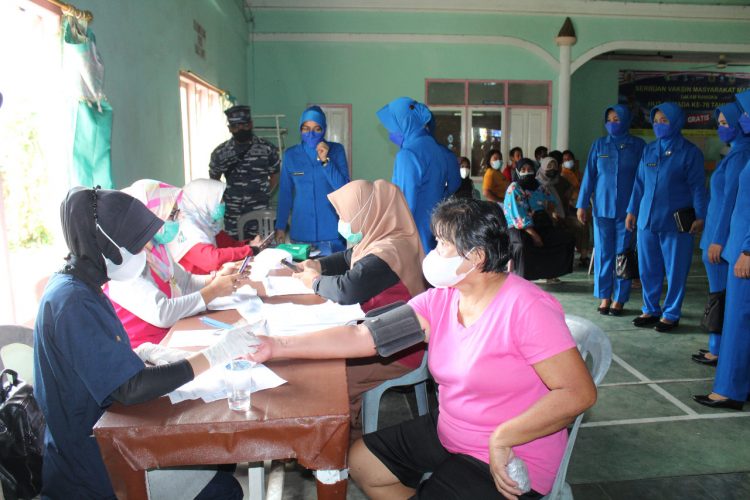 Bangka – Pangkalan TNI AL Bangka Belitung melalui Balai Kesehatan bekerjasama dengan Dinas Kesehatan Kabupaten Bangka dan Puskesmas Belinyu kembali melaksanakan serbuan Vaksinasi dosis pertama dan kedua kepada masyarakat maritim dalam rangka rangkaian Hari Armada RI ke 76 di Gedung Serbaguna Kecamatan Belinyu Kabupaten Bangka,Jum’at 03/12/2021.