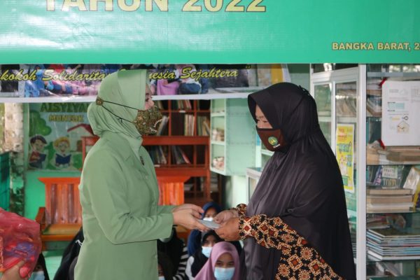Muntok, Ketua Persit KCK Koorcab Rem 045 PD II/Sriwijaya Ny Desi Ujang Darwis didampingi pengurus dan ketua persit cabang LV Kodim 0431/Bangka Barat Ny. Deri Indrawan melaksanakan anjangsana sekaligus baksos di Panti Asuhan Aisyiyah Jln. Basuki Rachmat XII/7 Kp Jawa Kelurahan Sungai Daeng Kecamatan Muntok, Rabu 23/03/2022.