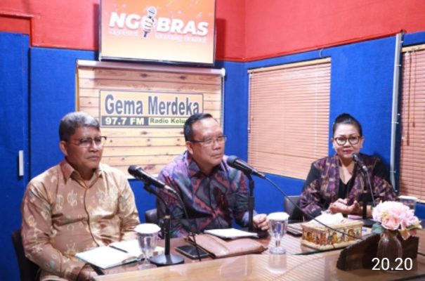 Denpasar – Ketua Tim Penggerak PKK Provinsi Bali, Ny. Putri Koster yang didampingi oleh dua (2) narasumber lainnya yakni : Prof. I Made Damriyasa, Koordinator Kelompok Ahli Bidang Pembangunan Pemerintah Provinsi Bali dan Prof. I Made Supartha Utama, Kelompok Ahli Bidang Pangan, Sandang dan Papan, mengisi program “Ngobrol Bareng Santai” di Radio Gema Merdeka, Rabu (8/3).