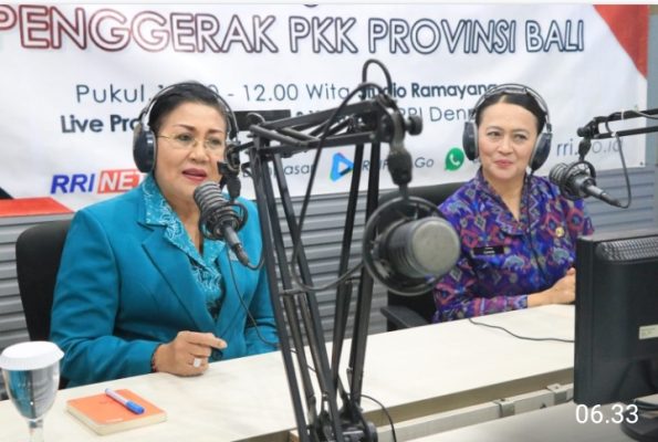 Denpasar – Ketua TP PKK Provinsi Bali Ny. Putri Koster menjadi narasumber dalam dialog interaktif RRI Denpasar yang mengangkat tema “ Cegah Radikalisme Dengan Merajut Kebhinekaan “ di Stasiun RRI Denpasar, Selasa (20/12)