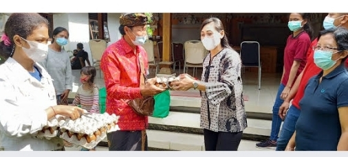 Ketua TP. PKK Kabupaten Gianyar, Serahkan Sembako Kepada Lansia dan Yatim