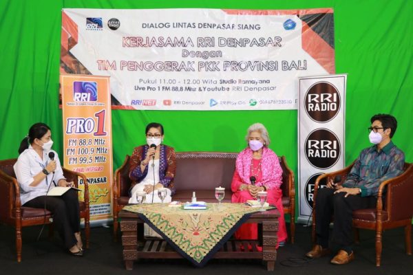 Menggunakan radio sebagai media sosialisasi, Ny. Putri Koster menggandeng dua pakar kesehatan jiwa yaitu Prof.Dr.dr. Luh Ketut Suryani, SpKj dan Dr.dr.Cokorda Bagus Jaya Lesmana, SpKj. Ketiganya hadir menjadi narasumber pada Dialog Lintas Denpasar Siang RRI Denpasar dengan tema ‘Gangguan Mental, Gejala, Penyebab dan Mengobati’, Senin (7/3/2022).