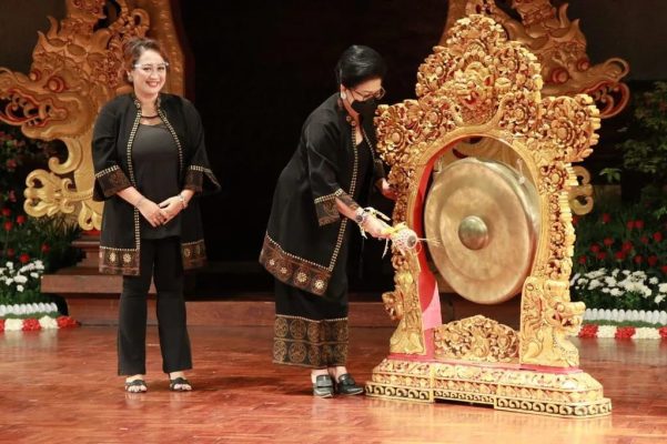 Denpasar (Persindo) – Ketua TP PKK Provinsi Bali yang sekaligus Ketua Dekranasda Provinsi Bali Ny. Putri Koster dengan ditandai pemukulan gong melaunching Sekolah Perempuan Berdikari, di Gedung Ksirarnawa, Taman Budaya , Denpasar, Selasa (8/3)