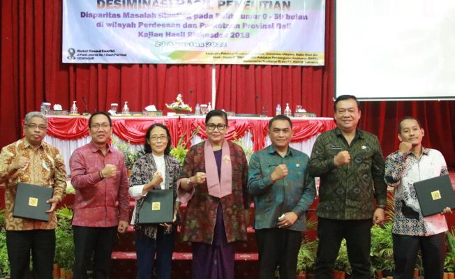 Sementara itu, Ketua Tim Peneliti Dr. AA Ngurah Kusumajaya menyampaikan bahwa yang dikaji timnya adalah hasil Riskesdas Tahun 2018. Kajian ini diharapkan mampu memberi gambaran bagi tim penurunan angka stunting untuk menetapkan prioritas yang harus digarap. Kegiatan diseminasi melibatkan perwakilan Dinas Sosial, Dinas Kesehatan, Dinas PMD Provinsi dan Kabupaten/Kota serta 120 Kepala Puskesmas.