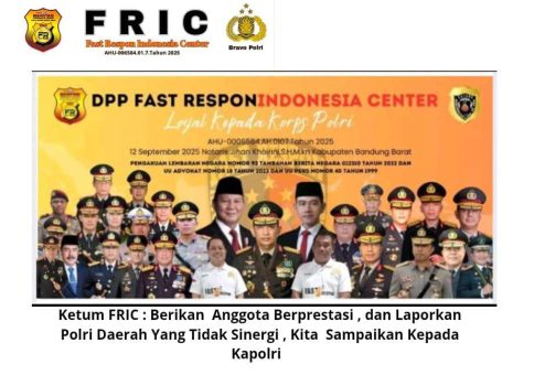 Jakarta, Persindonesia.com – Ketua Umum Fast Respon Indonesia Center H. Dian Surahman menyampaikan kepada seluruh Ketua Pimpinan Wilayah se Indonesia untuk memberikan laporan perkembangan kinerja Kepolisian Daerah masing masing ke DPP FRIC