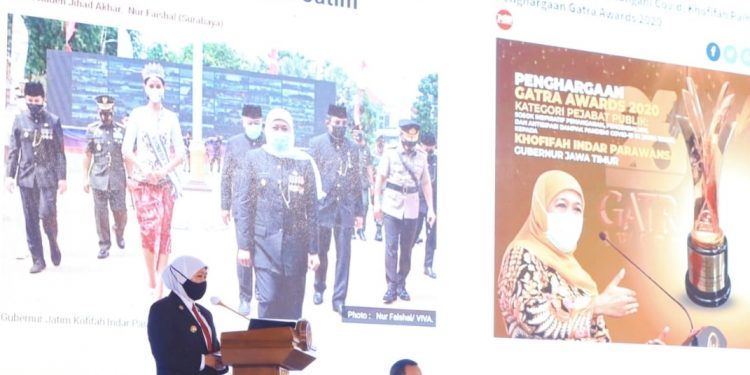 Surabaya,Persindonesia,- Gubernur Jatim Khofifah Indar Parawansa mendapat kesempatan memberikan kuliah umum dengan tema “Percepatan Pemulihan Ekonomi dan Strategi Penangganan COVID-19” (Stadium General) di Gedung Balaiurang Jendral Rudini Institut Pemerintahan Dalam Negeri (IPDN) kampus Jatinangor – Jawa Barat.