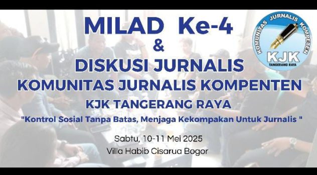 Kota Tangerang,Persindonesia.com- Komunitas Jurnalis Kompeten (KJK) Tangerang Raya akan merayakan Milad ke-4 dengan menggelar acara bertajuk “Diskusi Jurnalis” yang akan berlangsung pada Sabtu hingga Minggu, 10-11 Mei 2025, bertempat di Villa Habib, Cisarua, Bogor.