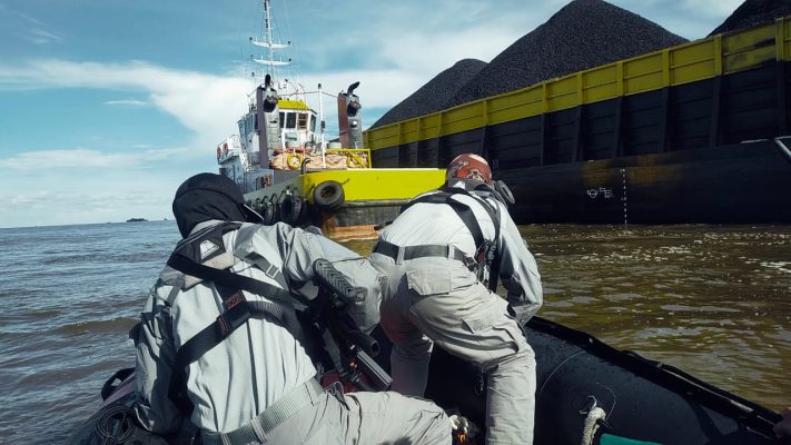 Persindonesia.com Samarinda, KN Kuda Laut 403 melaksanakan perbantuan kapal tongkang TB MC 09 – BG Bulesko IV yang mengalami kandas akibat arus air kencang di perairan alur masuk Muara Pegah, Samarinda, Selasa (21/6/2022).