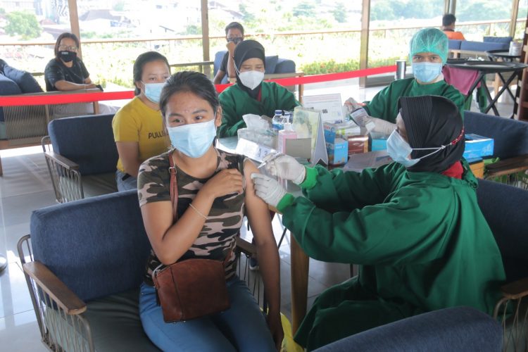 Badung | persindo – Kegiatan vaksinasi tahap kedua yang dilaksanakan di Krisna Oleh-oleh Bali, Jalan Bypass Ngurah Rai, Kuta, Kabupaten Badung menyasar sebanyak 650 orang pelaku pariwisata dengan menggunakan Vaksin Sinovac dan melibatkan 4 Tim Vaksinator dari Kesdam IX/Udayana, Senin (17/5/2021).