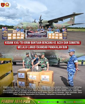 Persindonesia.com Kotawaringin Barat – Kodam XXII/Tambun Bungai kembali menunjukkan kepeduliannya terhadap masyarakat terdampak bencana alam di Aceh dan Sumatra dengan mengirimkan bantuan kemanusiaan berupa pakaian layak pakai. Pengiriman bantuan tersebut dilaksanakan pada Rabu (17/12/2025) pukul 14.00 WIB bertempat di Avron Base Ops Lanud Iskandar, Jalan Iskandar, Desa Pasir Panjang, Kecamatan Arut Selatan, Kabupaten Kotawaringin Barat.