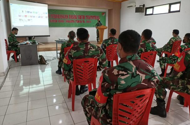 Kodam Jaya, Jakarta Timur – Dalam rangka memelihara dan mengasah kemampuan Prajurit TNI AD, Kodim 0505/JT menggelar Latihan Perorangan Dasar (Latorsar) umum teritorial bertempat di Aula Makodim, Senin (21/02/2022).
