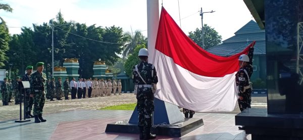 Kasdim 0505/JT Letkol Inf Ali Cahyono, S.Kom, M.Tr (Han) pada upacara 17-an, membacakan amanat Panglima TNI, masih dalam suasana bulan Ramadhan, selamat menunaikan ibadah puasa dan selamat menyambut datangnya Hari Raya Idul Fitri 1 Syawal 1444 Hijriah, kita songsong datangnya hari kemenangan dengan terus memperbanyak amal kebaikan dan berbagi kepada sesama.