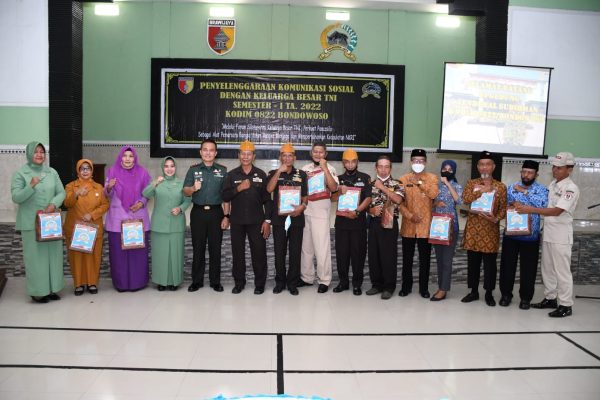 BONDOWOSO, Persindonesia – Untuk meningkatkan harmonisasi hubungan TNI Kodim 0822 Bondowoso menggelar Komunikasi Sosial (Komsos) dengan Keluarga Besar TNI (KBT), dengan mengusung tema Kedaulatan “Melalui Forum Silaturahmi Keluarga Besar TNI, Perkuat Pancasila Sebagai Alat Pemersatu Bangsa Dalam Rangka Menjaga Dan Pertahanan Kedaulatan NKRI” bertempat di Aula Jenderal Sudirman Makodim 0822 Kelurahan Kotakukon Kecamatan Bondowoso, Rabu (8/6).