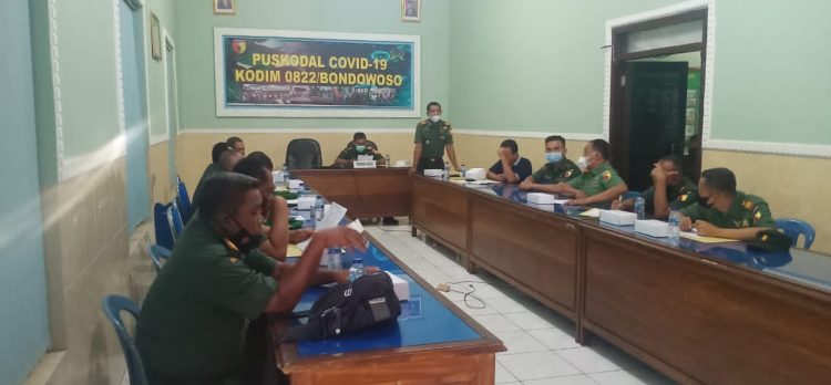 BONDOWOSO, Persindonesia – Dandim 0822/Bondowoso Letkol Arm Suhendra Chipta, M.Tr.Hanla yang diwakili Pasiops Kapten Kav Andoko memimpin langsung Sidang Panitia Kepangkatan dan Karier (Pankar) jabatan bagi Bintara dan Tamtama Triwulan II TA. 2022 dilingkungan Kodim 0822, bertempat di ruang Data Makodim 0822 Jl. Letnan Sutarman No. 06 Bondowoso, Kamis (19/5).