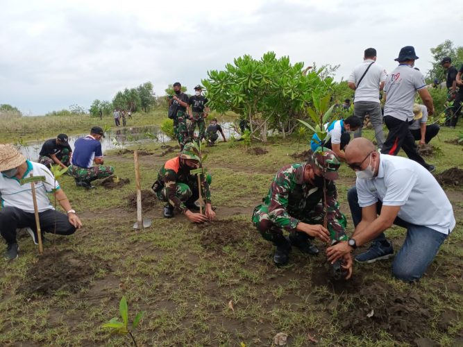 Persindonesia.com Jembrana – Sebagai wujud kepedulian terhadap lingkungan ekosistem laut, Kodim 1617/Jembrana menggelar aksi penghijauan dengan menanam ribuan pohon Mangrove. Sebanyak 5000 pohon Mangrove ditanam dikawasan Taman Mangrove Park Banjar Taman, Desa Tuwed, Kecamatan Melaya, Kabupaten Jembrana, Jum’at (03/12/2021)