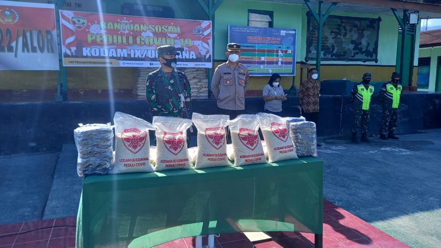 Dandim 1622/Alor Letkol Inf Supyan Munawar, S.Ag dalam sambutannya mengatakan, total bantuan sebanyak 10 ton beras dari Kodam IX/Udayana dan 2.800 masker dari BNPB, tersebut disalurkan dari Kodim ke masing-masing Koramil, dan diteruskan kepada masyarakat oleh Babinsa bersama Bhabinkamtibmas.
