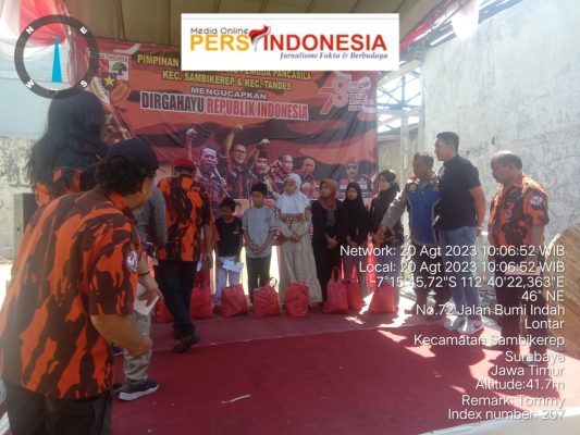 Surabaya,persindonesia.com – Minggu pagi tanggal 20 agustus 2023 suasana di sekitar jalan bumi indah meriah, ada banyak anggota Pemuda Pancasila berkumpul baik dari PAC Tandes dan PAC Sambikerep untuk merayakan HUT RI ke 78.