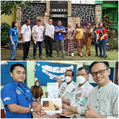 Sekolah Ir. Dian Darsin, Ketua Umum WOTK dan Ketua BTS & Graduation SMAN 53 Bapak Suyanta yang didampingi oleh panitia lainnya yaitu ibu iie Sri Rejeki, ibu Miftahul Khair dan ibu Rina.