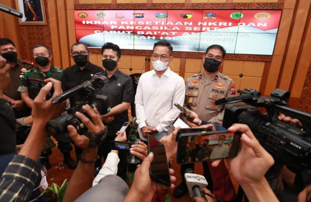 Surabaya,Persindonesia.com,- 15 Anggota Jamaah Islamiyah (JI) Jawa Timur kembali dipelukan NKRI dengan melakukan Ikrar kesetiaan NKRI dan Pancasila, serta cabut Bai’at anggota Jamaah Islamiyah (JI). Kegiatan ini berlangsung di gedung Hayam Wuruk, Kantor Gubernur Jawa Timur, Jalan Pahlawan no.110 Bubutan, Surabaya. Senin (8/8/2022).