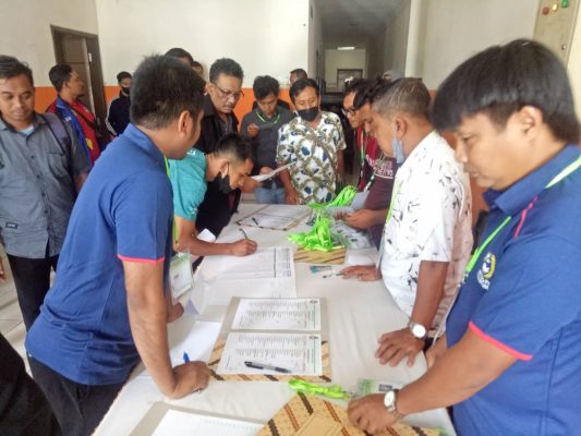 Setelah ceremonial acara selesai sidang diskors selama 10 menit, para peserta yang jumlahnya 28 Klub, peserta kompetisi aktif ASKAB PSSI Tulungagung, ada yang meninggalkan ruang sidang ada yang yang tenang sesuai tempat duduk yang telah diberi tanda nama Klub dan Voter ( pemilih).
