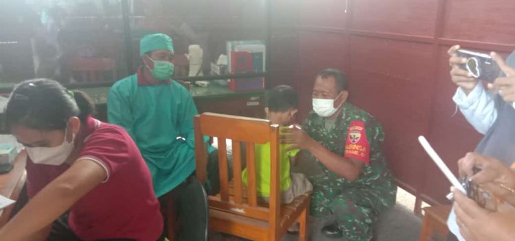 “Secara konsisten kita selalu memberikan pendampingan kepada Tim Vaksinator saat memberikan Vaksinasi baik kepada anak anak maupun masyarakat umum,” Ucap Sertu Kadek Sukasrana