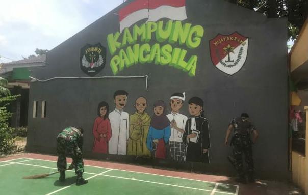 Anggota Koramil 03/Serpong bersama warga binaan terus melakukan pembersihan kampung Pancasila di wilayah teritorial Koramil 03/Serpong dengan bergotong royong.