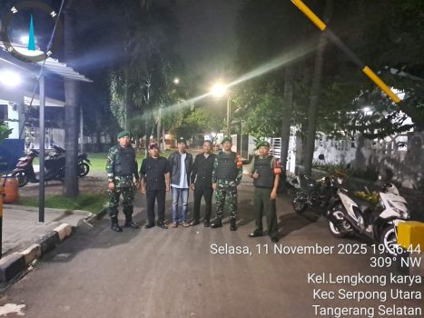 Kodam Jaya, Tangerang,Persindonesia.com- Dalam upaya memperkuat keamanan lingkungan dan menjaga ketertiban masyarakat, Koramil 09/Serpong Utara (Serut) Kodim 0506/Tangerang menggelar patroli malam bersama Komponen Pendukung (Komduk) di sejumlah titik strategis wilayah Tangsel, Selasa (11/11/2025) malam.