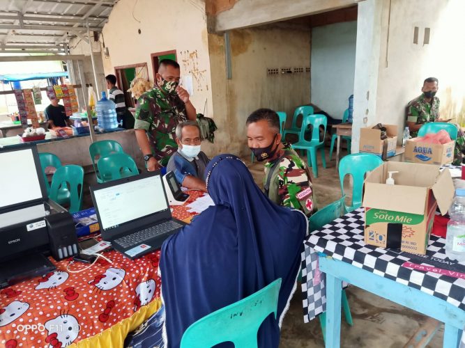 PJ Danramil 05 Kelapa kampit Serma Aripianto menjelaskan bahwa salah satu langkah percepatan penanganan penyebaran virus covid-19 yaitu dengan meningkatkan herd immunity.