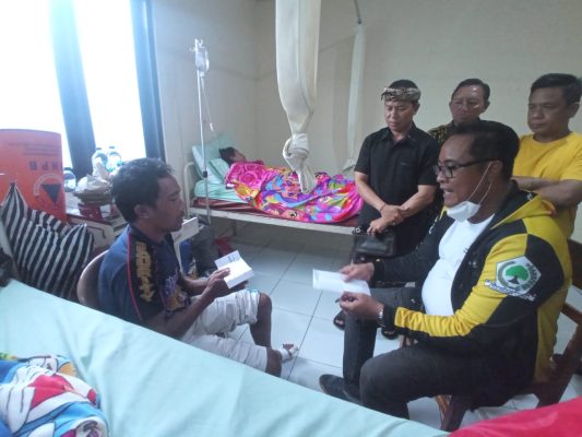Setelah menyerahkan bantuan kepada perwakilan keluarga, satgas langsung menuju ke Puskesmas Selat untuk menjenguk korban yang masih dirawat. Di sana, rombongan yang juga terdiri dari Ketua AMPG, AMPI, KOSGORO, Ketua PK Selat dan anggota fraksi bertemu langsung dengan I Gusti Ngurah Suparta ayah korban yang sedang menjaga anak I Gusti Ayu Trisna Dewi dan istrinya I Gusti Ayu Kartini yang kini masih dalam perawatan.