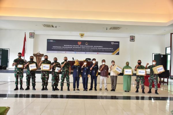 SAMARINDA, Persindonesia.com Prajurit, PNS dan Persit Kartika Chandra Kirana Koorcab Rem 091 PD VI/Mulawarman mengikuti Sosialisasi Program PT Asabri (Persero) berdasarkan PP 54 tahun 2020 tentang perubahan atas PP 102 tahun 2015 dengan tetap menerapkan protokol kesehatan Covid-19, di aula Wira Yudha Korem 091/ASN, Jl. Gajah Mada No.11 Kel. Bugis Kec. Samarinda Kota Kota Samarinda Prov Kaltim Kamis (30/12/2021).