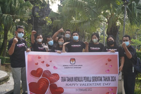 Persindonesia.com Jembrana – Bertepatan dengan hari kasih sayang “valentine day” KPU kabupaten Jembrana mulai memanaskan “mesin” sosialisasi. Ada berbagai kegiatan yang dilaksanakan KPU Jembrana dalam rangkaian peluncuran hari pemungutan suara pemilu serentak tahun 2024 ini, diantaranya adalah penanaman pohon, penyebaran fliyer sosialisasi, interaktif di radio dan nonton bersama “nobar” peluncuran hari Pemungutan suara pemilu tahun 2024. Senin (14/2/2022)