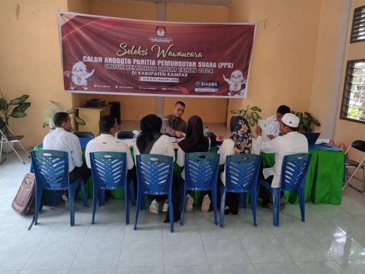 TAPUNG HILIR (KAMPAR), – Komisi Pemilihan Umum Daerah (KPUD) Kabupaten Kampar bersama Panitia Pemilihan Kecamatan (PPK) Tapung Hilir melaksanakan tahapan seleksi penerimaan calon anggota PPS di Kecamatan Tapung Hilir dengan melakukan Tes Wawancara kepada peserta yang sudah dinyatakan lulus pada tes CAT beberapa hari yang lalu.