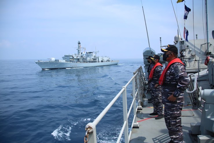 KRI Bung Tomo 357 dan Kapal Perang Inggris HMS Richmond F 239 melaksanakan Latihan Passing (Passex) di perairan Jakarta, Minggu (10/10/2021).