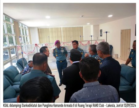 Kepala Staff Angkatan Laut ( KSAL ) Laksamana TNI Dr. Muhammad Ali, S.E., M.M., M.Tr.Opsla., didampingi Komandan Kodiklatal Letnan Jenderal TNI (Mar) Nur Alamsyah, S.E., M.M., M.Tr. (Han). dan Panglima Komando Armada II, Laksamana Madya TNI Ariantyo Condrowibowo, M.Tr. Opsla., mengunjungi Lakesla (Lembaga Kesehatan Kelautan TNI AL) di Surabaya dan RAHO Club-Lakesla. Jum’at, 13/9/2024, (Red)