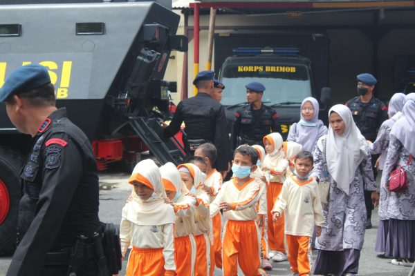 Satuan Brimob Polda Riau mengelar perlengkapan untuk dikenalkan kepada siswa siswi TK fan anak – anak didik PAUD yaitu perlengkapan PHH, Wanteror, jibom dan juga kendaraan AVC Woff dan D-Max, Siswa siswi yang mengunjungi Mako SatBrimob Polda Riau diajak menaiki mobil AVC Woff dan D-Max untuk mengelilingi seputaran Mako Sat Brimob Polda Riau