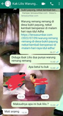 BANGKINANG- Wanita berinisial L yang diduga pemilik warung remang-remang yang nekat beroperasi di malam takbiran Idul Adha mengirimi gambar tidak senonoh saat dikonfirmasi wartawan.