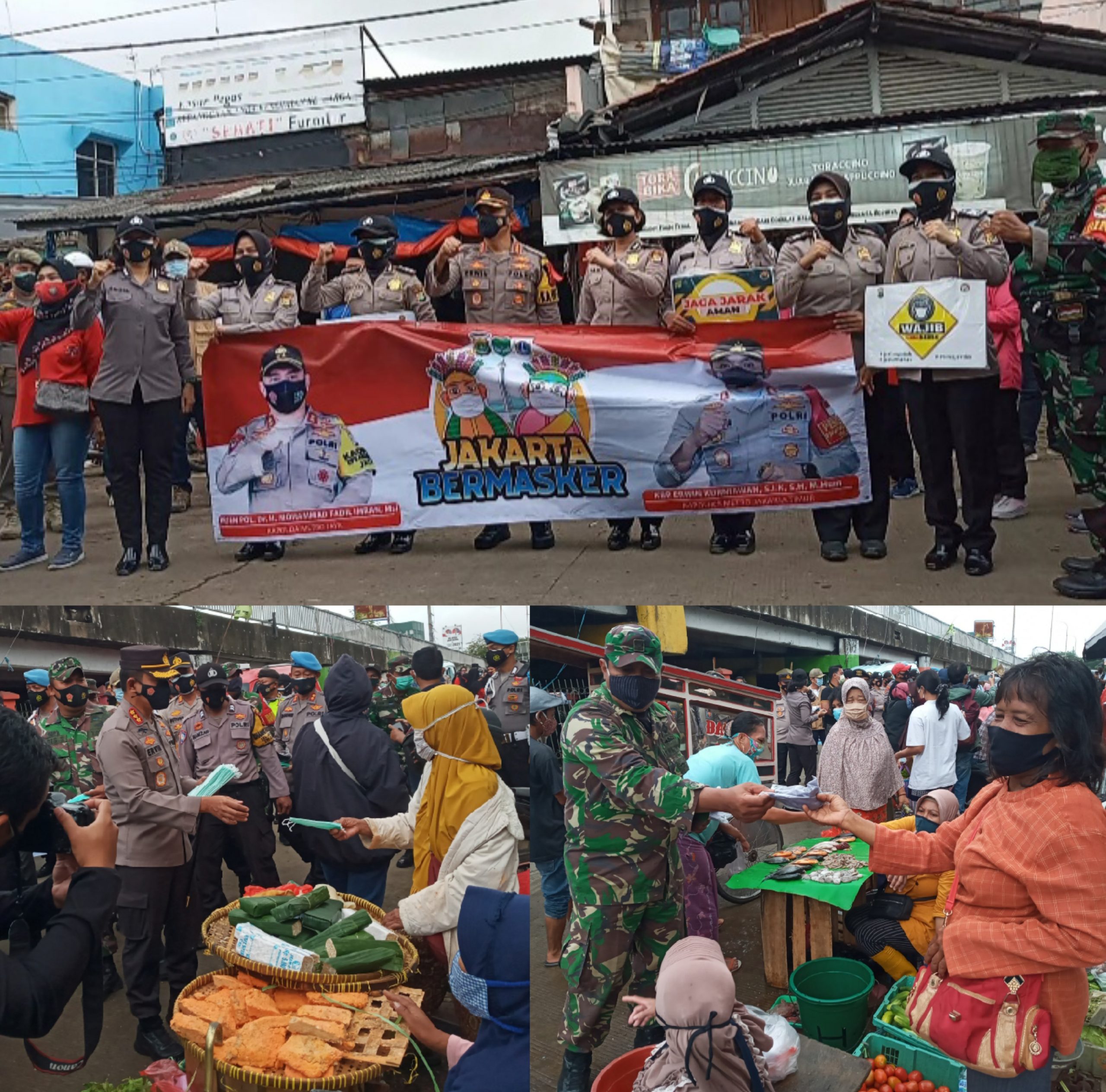 Dalam rangka memutus mata rantai Covid-19, dan menindak lanjuti Program “JAKARTA BERMASKER” yang dicanangkan Kapolda Metro Jaya Irjen Muhammad Fadil Imran, Kapolres Metro Jakarta Timur Kombes Pol Erwin Kurniawan bersama jajarannya, untuk kesekian kalinya menyisir pasar pasar trasidisional yang ada diwilayah hukum Polres Metro Jakarta Timur, Sabtu, 06/02/2021.