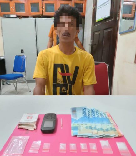 Selanjutnya didampingi aparat desa setempat dilakukan penggeledahan, dan ditemukan 6 paket narkotika jenis shabu terbungkus plastik bening seberat 3.32 gram, narkotika tersebut disembunyikan dalam kotak rokok Merk Sampoerna dalam kantong celananya.
