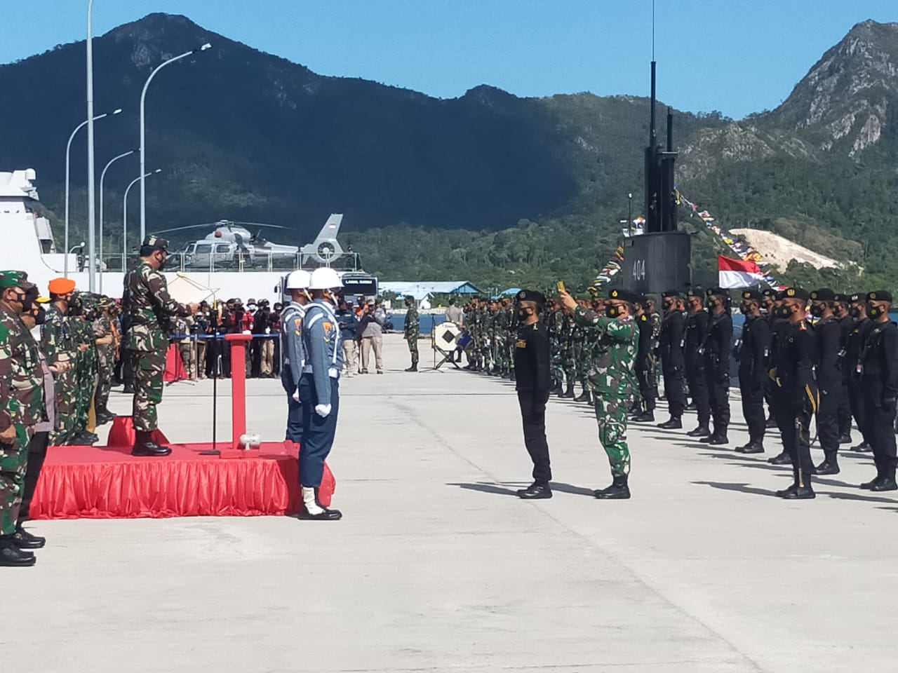 Upacara tersebut dipimpin langsung oleh Panglima TNI Marsekal TNI Hadi Tjahjanto, S.I.P., dan sekaligus pengambilan sumpah jabatan Komandan KRI Alugoro – 405.
