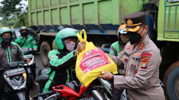 “Bantuan sembako tersebut diberikan kepada Sopir Taksi, Ojek Online, Petugas kebersihan beserta masyarakat yang lewat di Jl.Promoter, Jl.Letnan Soetopo dan Pasar Modern Serpong Tangerang Selatan, bantuan sembako merupakan sumbangan dari Bapak Kapolres Tangerang Selatan yang sangat peduli terhadap masyarakat”.