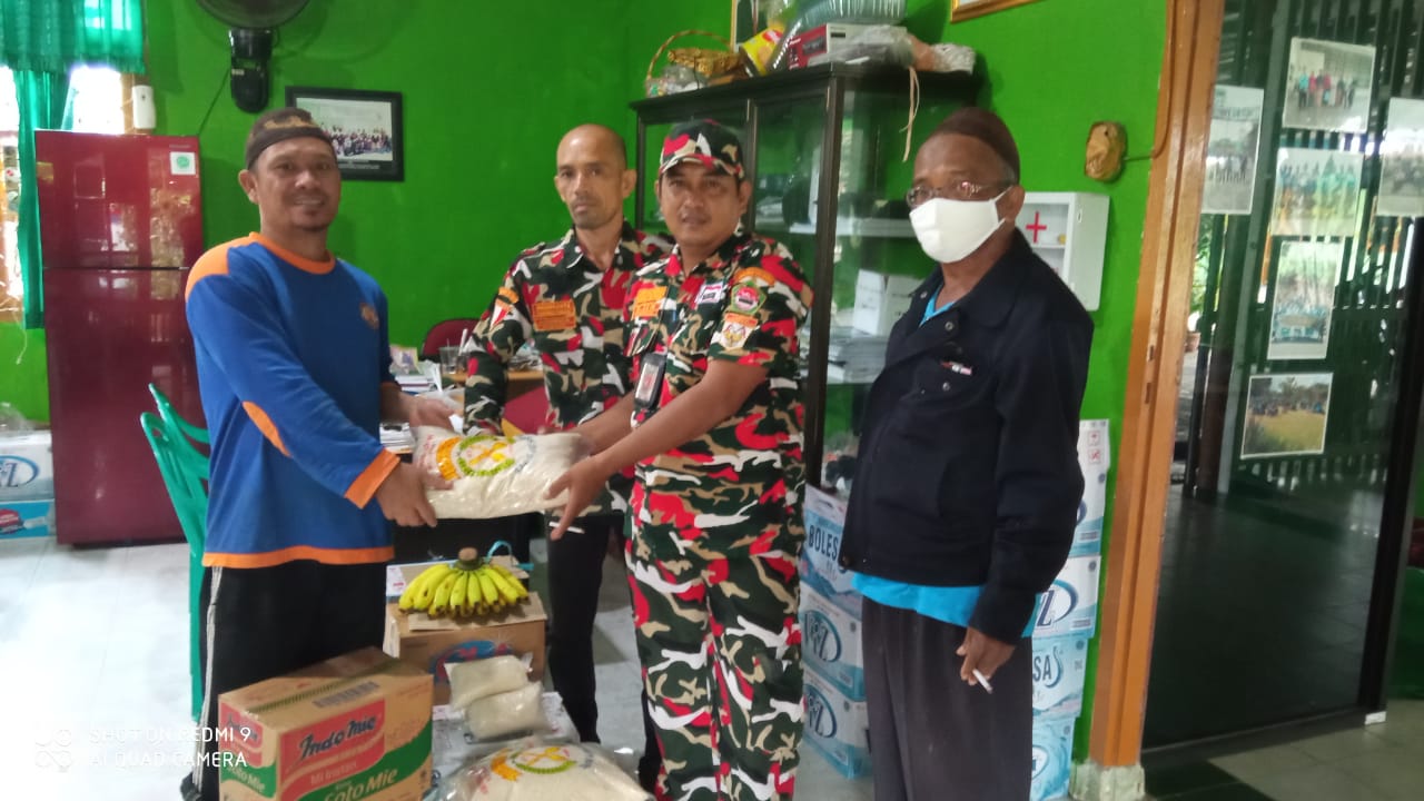 Ormas Laskar Merah Putih Indonesia Markas Cabang Kota Pangkalpinang mengadakan kegiatan Bantuan Sosial (Bansos) kepada masyarakat kurang mampu di Desa Kace Timur, Kecamatan Mendo Barat, Kabupaten Bangka Jum, at 15.01.2021