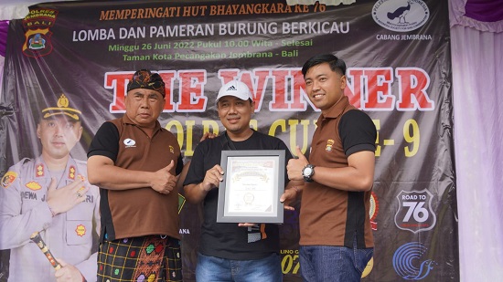 Persindonesia.com Jembrana – Lomba Burung Berkicau memperebutkan piala Kapolres Cup IX digelar dan bertempat di Taman Kota Pecangakan dalam rangka HUT Bayangkara ke-76. Lomba tersebut mengikutkan 32 kelas lomba. Diikuti oleh peserta dari seluruh Bali maupun di luar daerah Bali. Lomba yang diikuti dengan target ribuan peserta tersebut berlangsung dari pagi hari hingga sore hari.