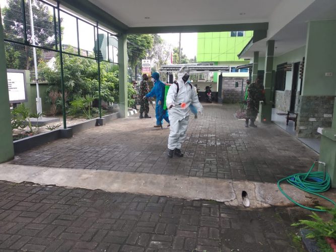 Tidak Hanya Ke Luar, Upaya Pencegahan Dan Pemutusan Mata Rantai Melalui Penyemprotan Disinfektan Dan Prebiotik ini, Juga Dilakukan Ke Dalam Internal Satuan Dengan Sasaran Pangkalan Atau Markas Kodim 0822 dan Koramil Jajaran Yang Tersebar Di Wilayah Kabupaten Bondowoso.