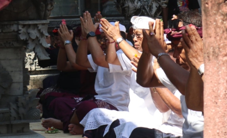 Koster bersama keluarga mengunjungi sejumlah pura yang menjadi simbol peradaban Pulau Dewata.