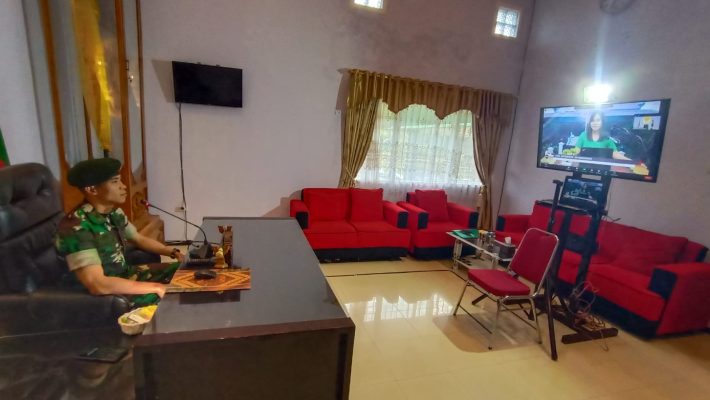 BONDOWOSO, Persindonesia – Danyonif R 514/SY Mayor Inf Rinto Wijaya, S.A.P., M.I.Pol., M.Han. Melaksanakan Live wawancara dengan stasiun berita FTV Jember yang berlokasi di Mayonif R 514/SY/9/2 Kostrad (via Zoom)