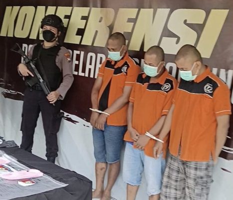 Tiga dari Lima orang pelaku yang dibekuk inisial S (40), MR (35) dan M (28), ketiganya warga Surabaya. Dua lainnya inisial F dan J masih dalam pengejaran.