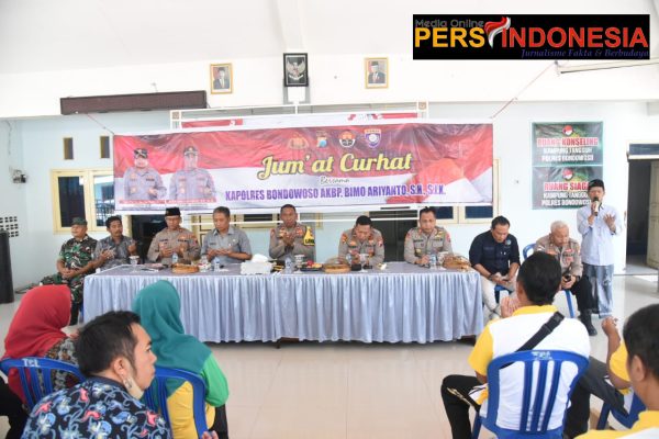 BONDOWOSO, Persindonesia.com – Kapolres Bondowoso melalui Kabag Ops. Kabag Ops, Kompol R. Heru Wahyudi, SH didampingi oleh para petinggi Polres Bondowoso melaksanakan Jumat Curhat di Balai Desa Tegalampel Kec. Tegalampel Jum’at (08/09/2023).