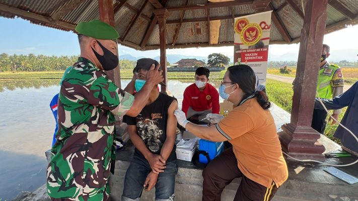 Persindonesia.com Jembrana – BIN Posda Jembrana bersama Dinas Kesehatan Jembrana, kembali melaksanakan vaksinasi door to door menyasar pekerja PT Mitra Prodin dan kali ini tim menyasar warga Banjar Yeh Buah, Desa Penyaringan, Kecamatan Mendoyo, Kabupaten Jembrana. Selasa (5/7/2022)