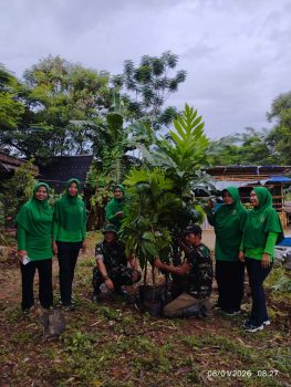 Anggota TNI, ibu-ibu Persit KCK, hingga anak-anak sekolah bahu-membahu menggali lubang dan menanam bibit pohon lokal. Pemilihan bibit pohon buah dan pohon keras bertujuan ganda: memperkuat struktur tanah guna mencegah erosi serta memberikan manfaat konsumsi bagi warga di masa depan.