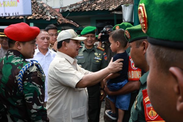 Menhan Prabowo juga sempat menyapa anak-anak dari anggota Babinsa. “Berapa umurnya, 5 tahun. Kamu mau jadi apa? Mau jadi Kapten. Oke kamu nanti akan jadi jenderal yang kuat,” ujar Menhan Prabowo.